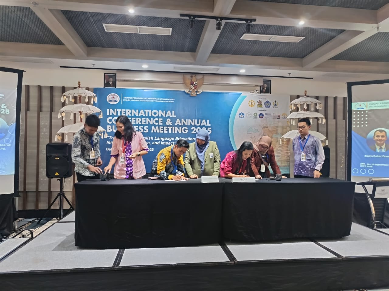 Sanur, Bali – Asosiasi Program Studi Pendidikan Bahasa Inggris se-Indonesia sukses menyelenggarakan Annual Business Meeting (ABM) 2025 yang berlangsung di Hotel Swiss-Belresort Watu Jimbar, Sanur, Bali (27/9/2025). Kegiatan mewah ini dihadiri oleh para ketua program studi Pendidikan Bahasa Inggris dari berbagai universitas di seluruh Indonesia, dengan total partisipasi mencapai 72 kampus.