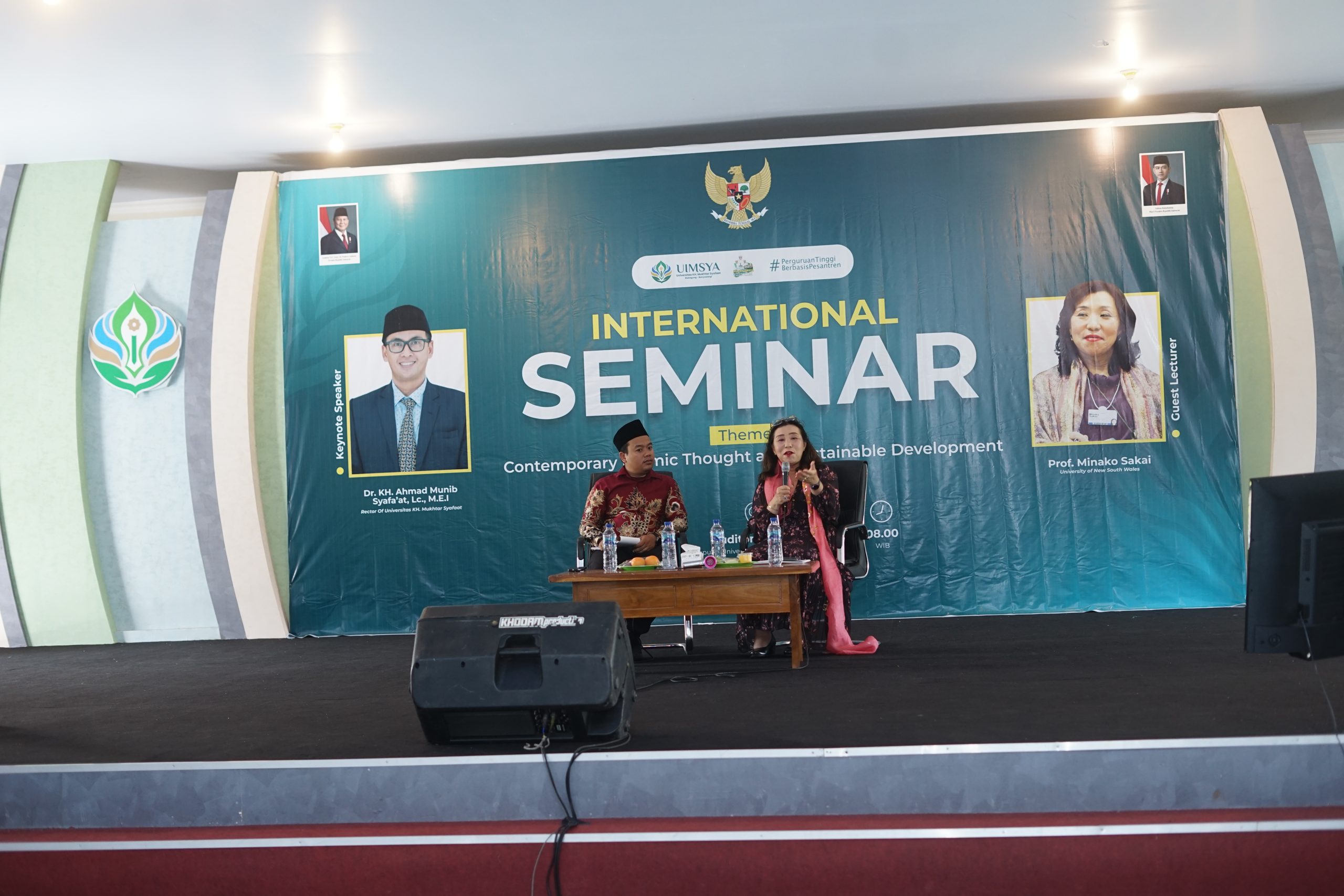 Lebih lanjut Dr.KH. Abdul Kholiq menekankan bahwa seminar internasional ini merupakan bagian dari komitmen UIMSYA untuk terus terlibat aktif dalam isu-isu Islam kontemporer yang berkaitan erat dengan tantangan global seperti pembangunan berkelanjutan. “UIMSYA tidak hanya sekedar memberikan teori, tetapi juga memberikan kontribusi nyata dalam berbagai bidang, termasuk penguatan masyarakat pascabencana, pembangunan berkeadilan, dan pengembangan kapasitas santri,” tambahnya. Ia juga menyoroti bahwa UIMSYA sebagai bagian dari Pondok Pesantren Darussalam Blokagung, yang saat ini membina lebih dari 10.000 santri, memiliki basis sosial yang kuat untuk menerapkan ide-ide pembangunan yang bersifat partisipatif dan transformatif.