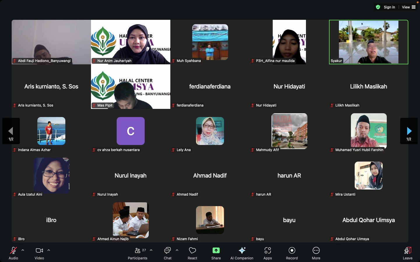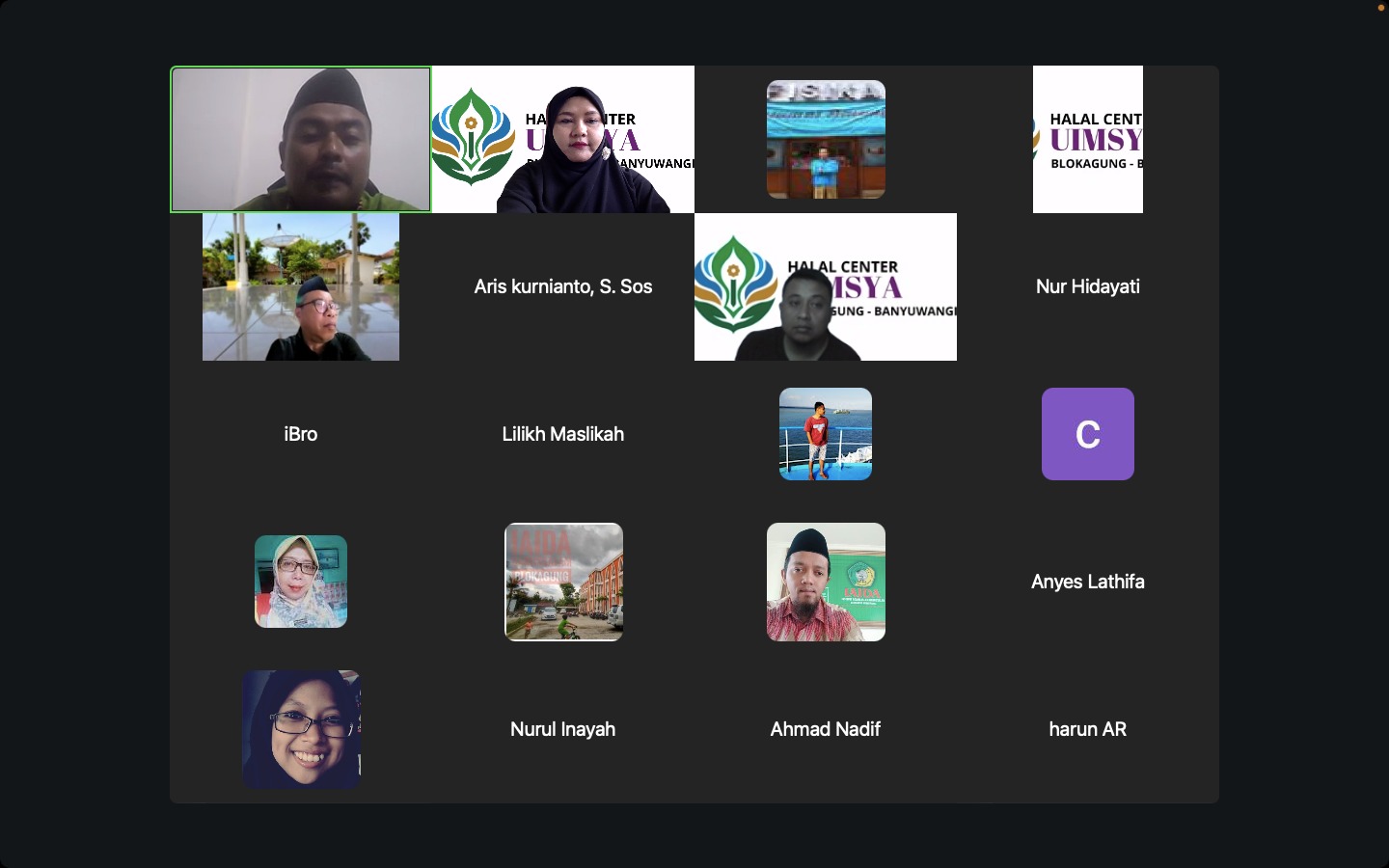 Sabtu, (1/2/2025), Dr. H. Abd. Syakur S.Ag., M.Si., Deputi Bidang Kemitraan dan Standarisasi Halal Badan Penyelenggara Jaminan Produk Halal (BPJPH) melaksanakan Penguatan Pendamping Proses Produk Halal (P3H) Halal Center UIMSYA Blokagung Banyuwangi melalui platform zoom meeting. Diskusi yang berlangsung selama tiga jam tersebut dibuka oleh ketua Halal Center Dr. Nur Anim Jauhariyah, S.Pd., M.Si sambil menyapa seluruh P3H dan calon P3H HC UIMSYA.