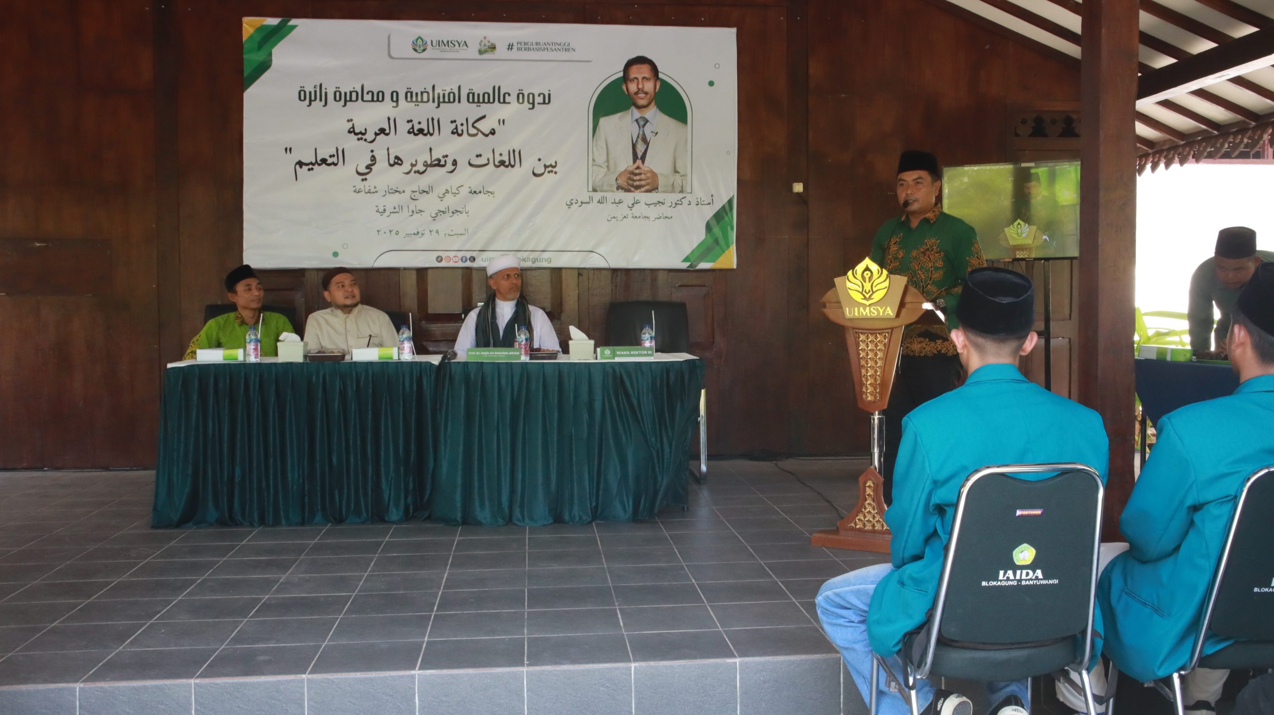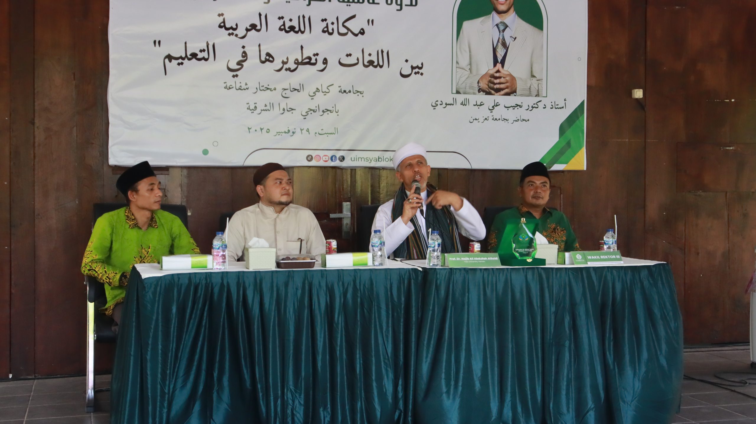 Banyuwangi — Universitas KH. Mukhtar Syafaat (UIMSYA) terus menunjukkan komitmennya dalam memperkuat peran akademik dan jaringan internasional melalui penyelenggaraan Seminar Internasional & Kuliah Tamu pada Sabtu (29/11/2025) di Kampus 2 UIMSYA Blokagung. Kegiatan ini mengangkat tema “Kedudukan Bahasa Arab di Kancah Internasional dan Pengembangannya dalam Pembelajaran.” Antusiasme mahasiswa dan dosen tampak sejak pagi, menunjukkan besarnya perhatian civitas akademika terhadap isu globalisasi bahasa dan pengembangan metode pembelajaran bahasa Arab di era modern.
