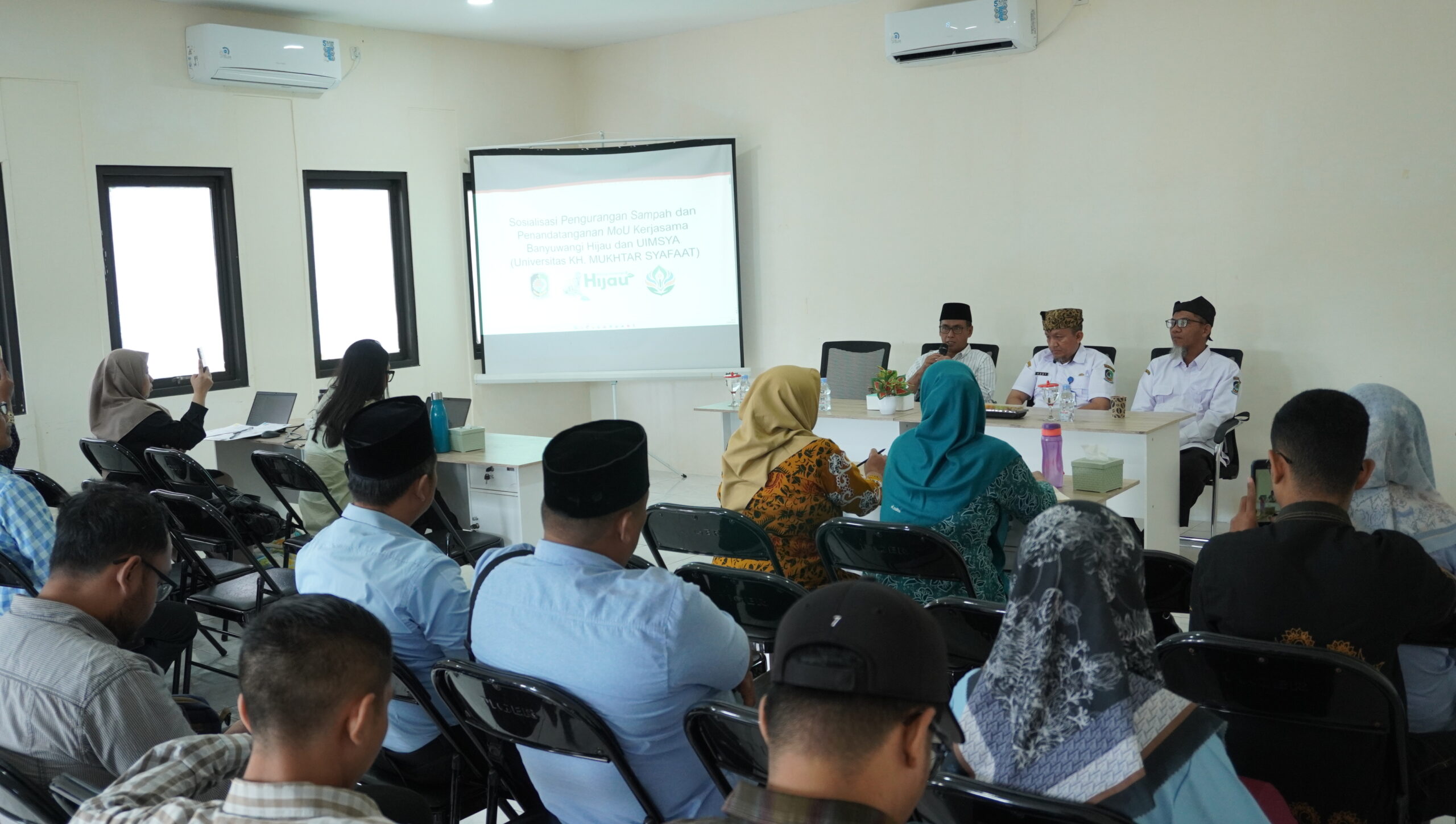 Banyuwangi — Universitas KH. Mukhtar Syafaat (UIMSYA) Blokagung Banyuwangi terus menunjukkan komitmennya sebagai kampus yang responsif terhadap persoalan lingkungan. Komitmen tersebut diwujudkan melalui kegiatan sosialisasi pengelolaan sampah sekaligus penandatanganan nota kesepahaman (MoU) dengan Dinas Lingkungan Hidup (DLH) Banyuwangi dalam pengembangan Tempat Pengolahan Sampah Reduce, Reuse, Recycle (TPS3R) pada Rabu (22/4/2026).