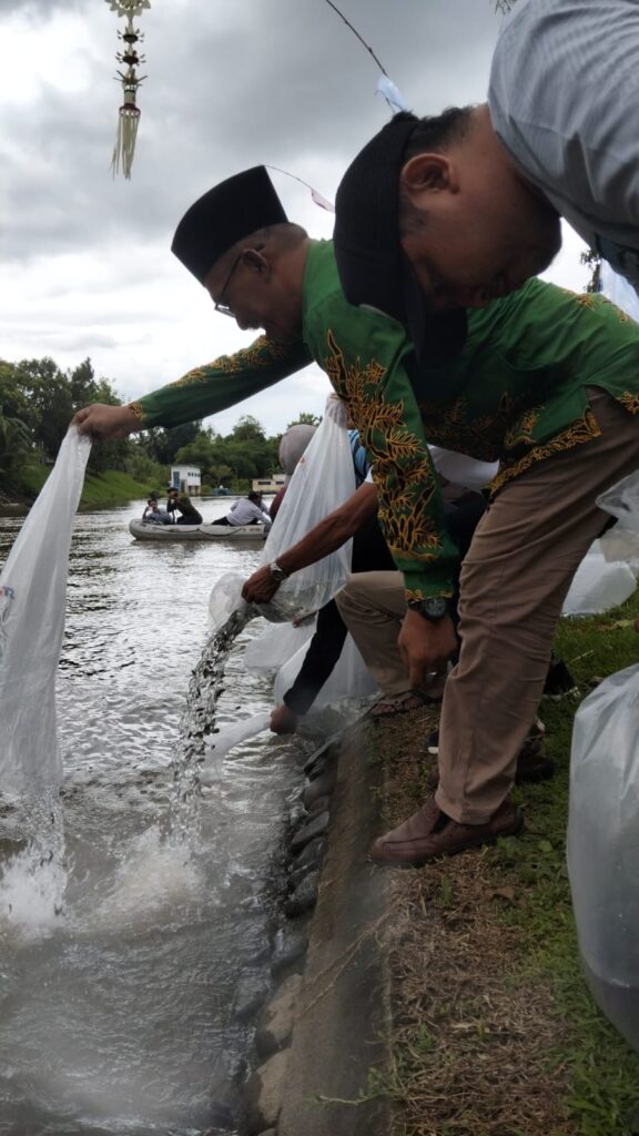 Universitas KH. Mukhtar Syafaat (UIMSYA) Blokagung Banyuwangi turut hadir dalam kegiatan “Sedekah Bumi” yang dirangkai dengan penebaran ratusan ribu benih ikan untuk pelestarian perairan umum yang digelar oleh FORTEL SCI (Shrimp Club Indonesia Forum Teknologi), Minggu (11/01/2026). Kegiatan yang dipusatkan di Bendungan Blokagung itu diikuti oleh berbagai elemen masyarakat, pegiat lingkungan, serta instansi terkait, termasuk Dinas Perikanan Kabupaten Banyuwangi.